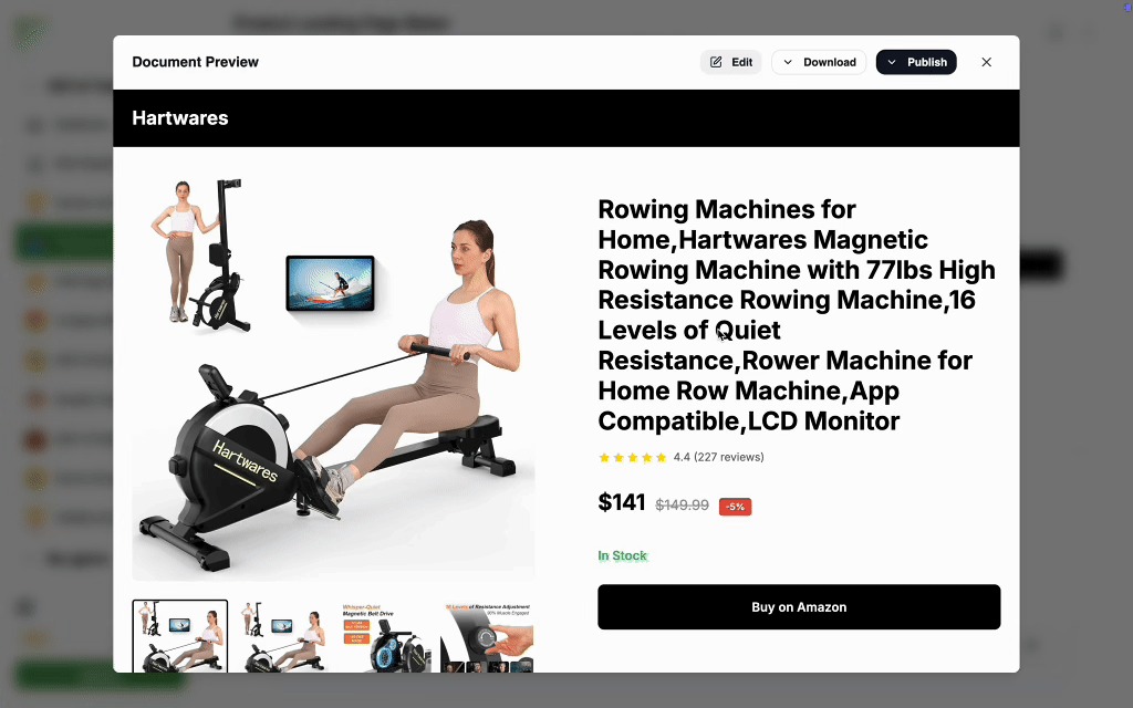 - The landing page includes your product details including product specifications, pricing, and comparison with other products.