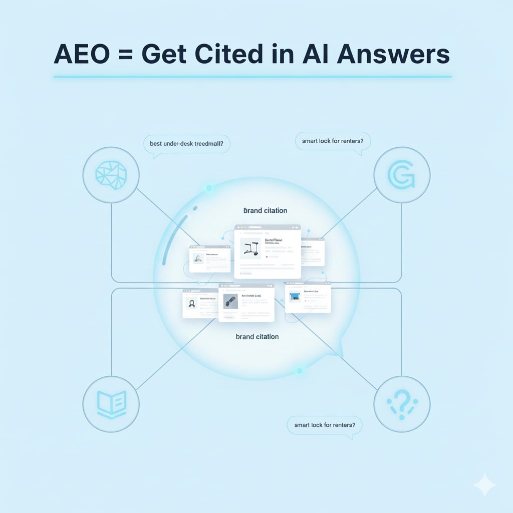 AEO, or Answer Engine Optimization, is all about helping AI tools like ChatGPT, Gemini, and Perplexity actually notice your brand. It makes it easier for these systems to find your content, understand what your products do, and use your pages as trusted sources when they answer people’s shopping questions. In simple terms, AEO helps your brand get mentioned, cited, and included in the answers that customers see.