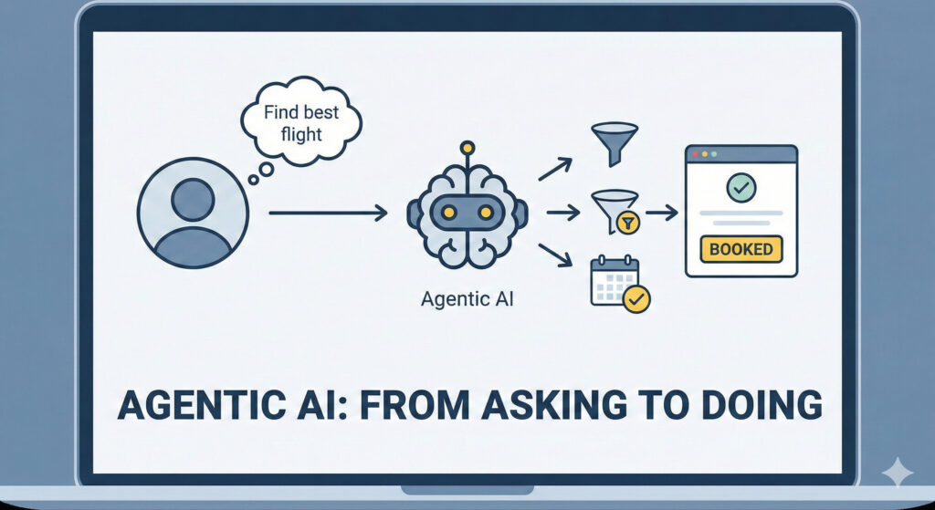 The trend defining this year is Agentic AI. Users are no longer just using tools to gather information; they are beginning to hand off the execution. They aren’t just asking, “What is the best flight?”—they are expecting the AI to find it, filter it by their preferences, and queue it up for booking.